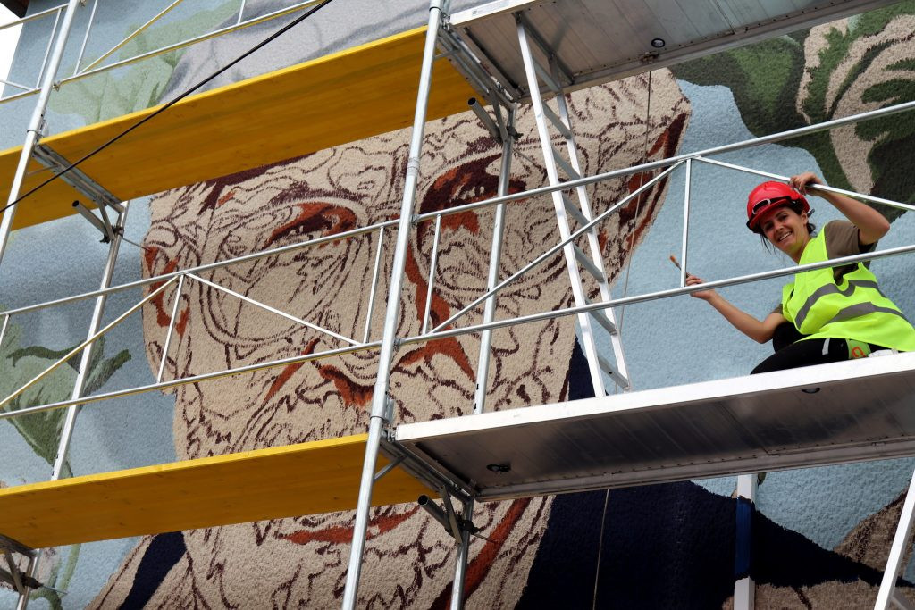 Sve se odvija onako kako sam zamislila i kako želim - poručila je autorka Marija Radosavljević - Komarac sa skela, okružena posudama za boje i slikarskim ki