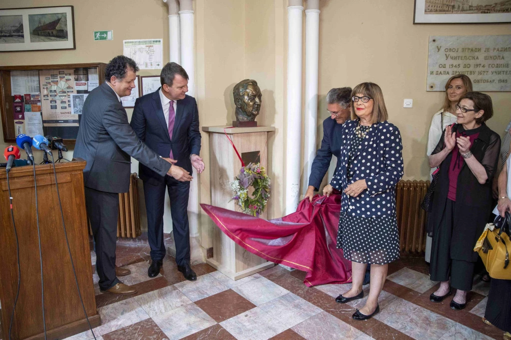 Bista akademika Dejana Medakovića juče je otkrivena u Karlovačkoj gimnaziji, gde je ministarka kulture Srbije Maja Gojković poručila da je to kruna obeležavanja stogodišnjice rođenja velikana naše kulture i nauke.