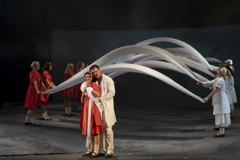 U predstavi učestvuju Orkestar, Hor i Operski studio „Borislav Popović“ Narodnog pozorišta u Beogradu.