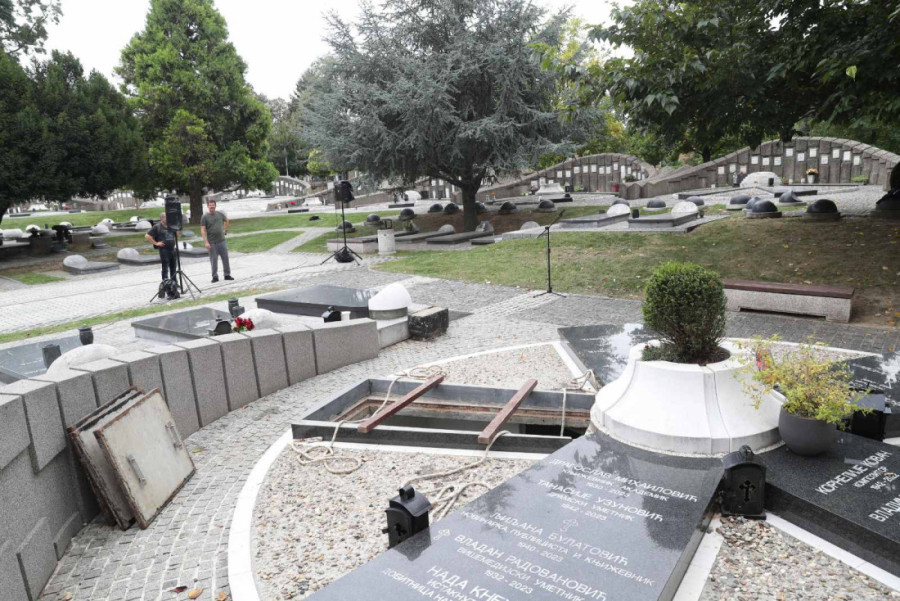 Bojana i Predrag su među prvima stigli na groblje i na ulazu u kapelu primaju saučešće.