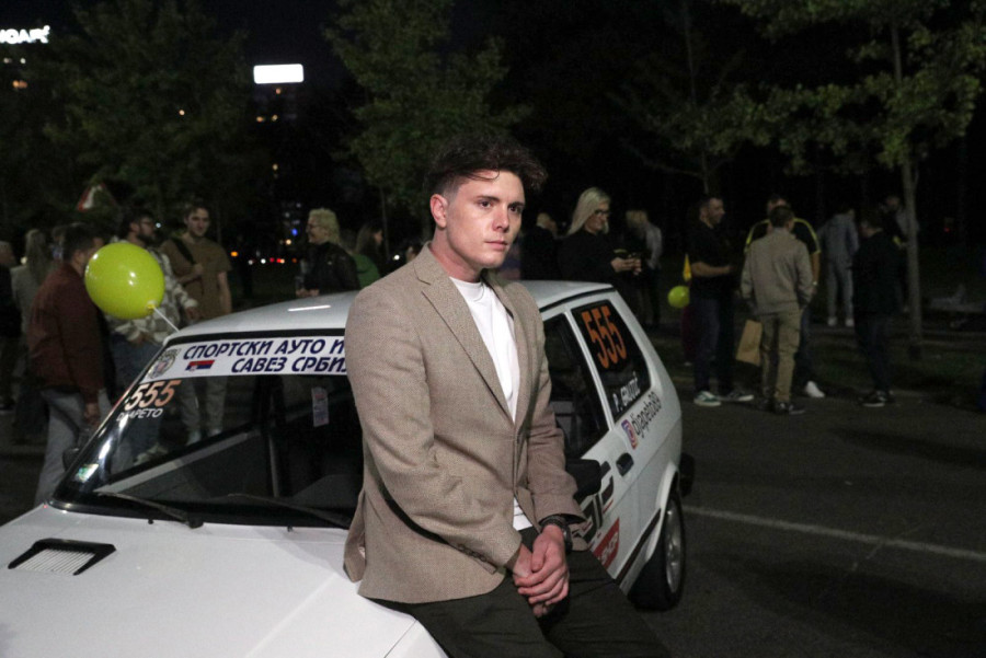 Miris benzina, pun gas, neizvesnost auto trka, ukratko atmosfera kod garaže TC Ušće, uoči premijere domaćeg filma "Prva klasa - pun gas", gde su nas sačekali "jugići" i jedan porše, pored Miodraga Radonjića i Radeta Ćosića, slobodno možemo reći glavnih junaka filma.