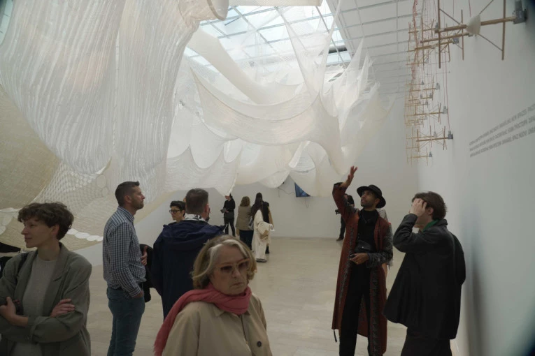 - Stoga, ova izložba nije samo arhitektonska instalacija, ona je poziv da preispitamo granice između starog i novog, između analognog i digitalnog, između prirodnog i veštačkog, da se zapitamo šta je inteligencija danas i gde se u njoj nalazi ljudskost. Ponosni smo što projekat iza sebe ima interdisciplinarni pristup, otvorenost za eksperiment i duboku svest o kontekstu. Neka ova postavka bude poziv na dijalog, na razmenu znanja i iskustava i pre svega na povezivanje, jer upravo su niti koje nas povezuju, objedinjuju i podsećaju da smo svi deo jedne složene i jedinstvene životne strukture.