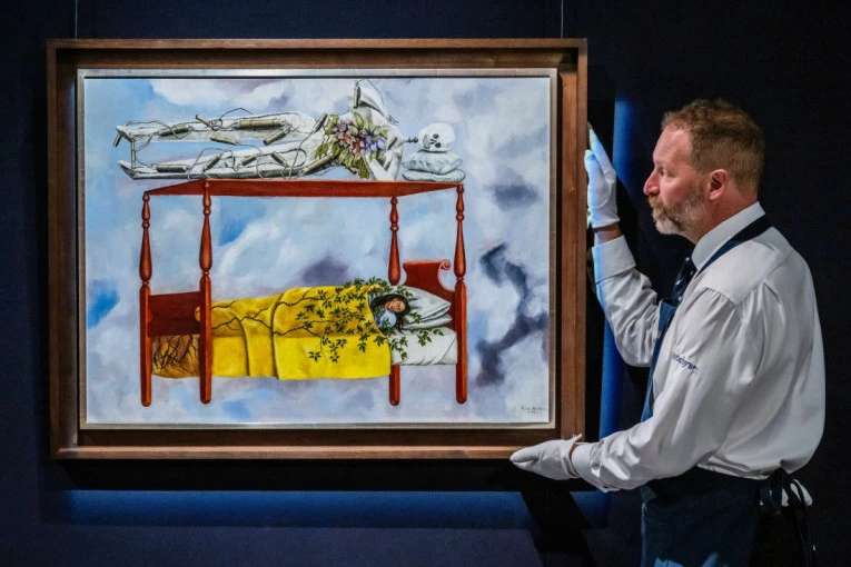 Autoportret iz 1940. godine, na kojem je prikazana kako spava u krevetu nad kojim se nadvija ogroman kostur, predstavljen je u Njujorku i procenjen je na vrednost između 40 i 60 miliona dolara, prenosi "Figaro".