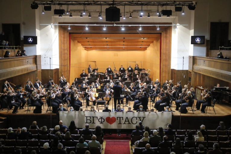 Orkestar je specijalno ovim povodom izveo Valcer broj 2 Šostakoviča, a uz prve taktove produkcijski tim Beogradske filharmonije je u salu Kolarca uneo veliki transparent na kome je pisalo „Beogradska filharmonija voli Tasu“