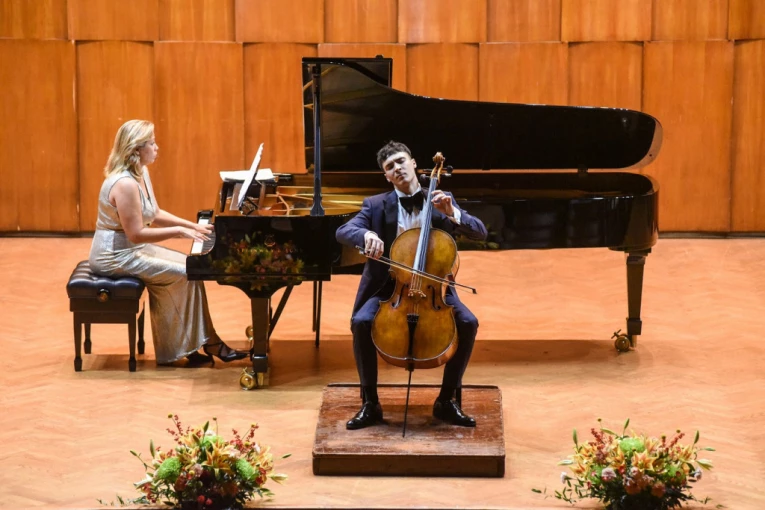 Mladi violončelista Petar Pejčić nastupio je juče na velikoj sceni Kolarčeve zadužbine uz klavirsku pratnju Natalije Mladenović, u okviru programa “BEMUS-ov podijum mladih”.