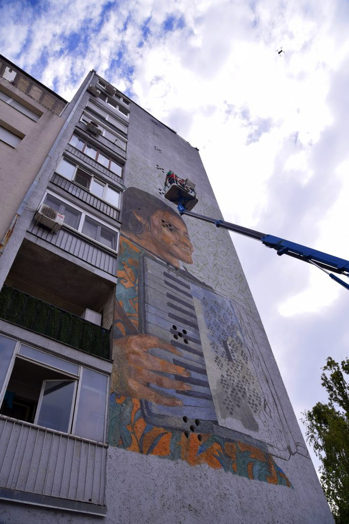 – Vuper je naslikao devojku koja svira harmoniku, a iznad nje je figura koja umesto glave ima cveće, a u rukama tamburicu. Izabrali smo ova dva instrumenta jer su veoma prisutna na ovom području i na njima se baziraju tradicionalna muzika i folklor – objašnjava Artez.