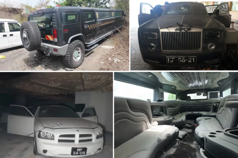 U podzemnoj garaži prizor postaje još fascinantniji. Ispod zgrade, u sablasnoj tišini, nalaze se deseci automobila — od Toyotinih Alpharda, koji su nekada služili kao prevoz za goste, do Porsche Cayennea, Audija A8, belog Dodge Chargera i ogromnog Hummera H2, rastegnutog do veličine minibusa, namenjenog za čak osamnaest putnika.