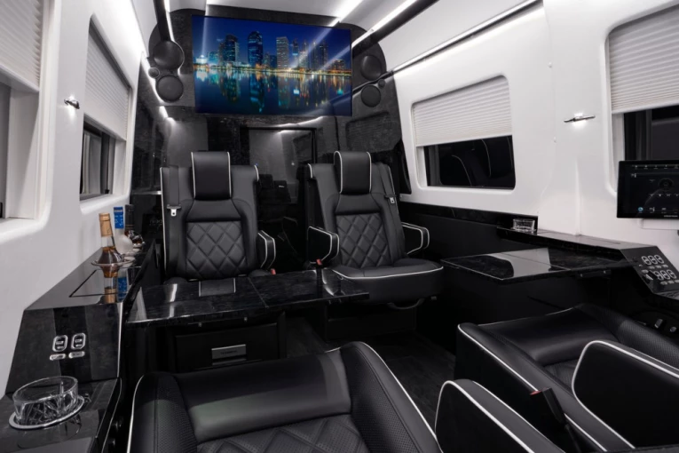 Dizajner enterijera je luksuzan, sa delovima od kože i drveta, a tu je i TV ekran visoke definicije, koji može služiti za časove opuštanja, ali i za onlajn sastanke. Za ljude koji se bave nekim biznisom, a stalno su u pokretu, tu je opremljen bar sa pićem, kao i ostala oprema za sastanke, kako uživo, tako i preko video-poziva.