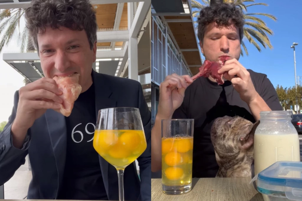 Ljudi gledaju i ne veruju: Muškarac jede isključivo sirovo meso, pije živa jaja, a razlog je krajnje bizaran! (VIDEO)