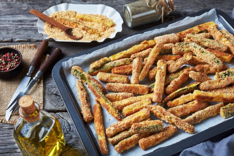 Još jedan sjajan način da pripremite tikvice jeste da ih isečete na štapiće i ispečete u rerni, prethodno ih umočivši u sastojke za pohovanje.