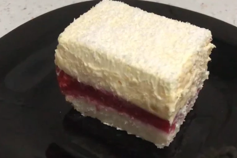 Ako ste u potrazi za kolačem koji izgleda kao da je izašao iz poslastičarske vitrine, ali se pravi u kućnim uslovima pronašli ste pravi. Ovaj recept kombinuje laganu kokos koru sa voćnim slojem od malina i bogatim, glatkim vanila kremom, sve zaokruženo slojem penasto umućenog šlaga.