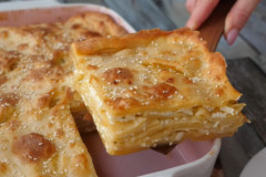 9. Pecite u prethodno zagrejanoj rerni na 180 stepeni oko 20 minuta, dok pita ne dobije zlatno-smeđu, hrskavu koricu.