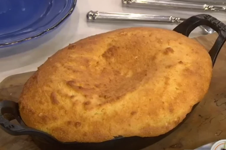 U posudi mikserom mutite mleko, jaja i kocke za supu, zatim dodajte kukuruzno brašno pomešano sa praškom za pecivo i peršun. Smesu sipajte u kalup koji ste namastili posuli brašnom.
