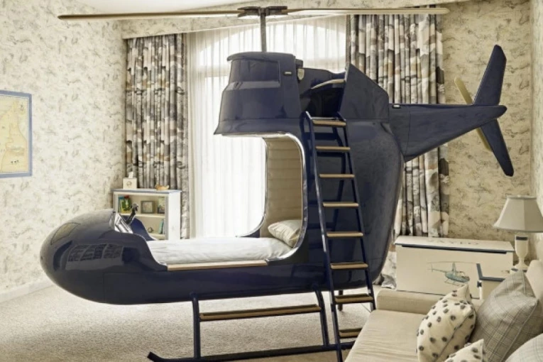 Ono što je po ukusu roditelja, a sigurno će oduševiti i najmlađe je Helicopter Bed krevet, sa potpisom Dragons of Walton Street. Svaki ručno izrađeni krevet u obliku helikoptera pravi se po porudžbini i prilagođen je svom pilotu sa jedinstvenom kontrolnom tablom koja sadrži džojstik, merač brzine, sat i radio sa ugrađenim zvučnikom. Krevet je takođe opremljen parom USB portova sa svoje unutrašnje strane, dok ga spolja krasi plavo bela rasveta.