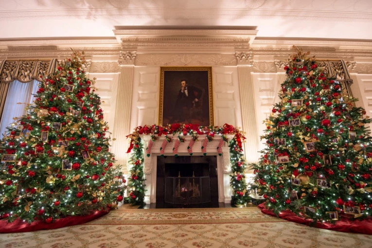 U hodnicima i sobama Bele kuće nalaze se brojne jelke, ukrašene motivima koje podsećaju na najradosniji praznik u godini.