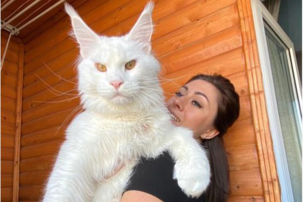 Prelepa bela mačka iz Rusije je toliko velika da mnogi prvo pomisle da je pas