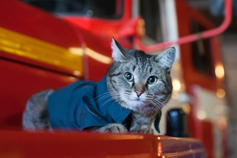 Takav je slučaj i sa mačkom Semjonom koji već dve godine živi u jednoj vatrogasnoj jedinici u selu Borovski u Tjumenjskoj oblasti, a u međuvremenu je postao i član ekipe i pomoćnik vatrogasaca.