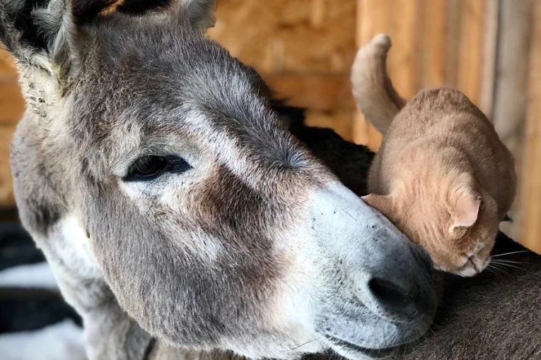 Fotografije na kojima su zajedno, gde maca uživa na leđima magarenceta, gde se maze ili ga ona čačka svojim kandžicama potpuno su neodoljive.