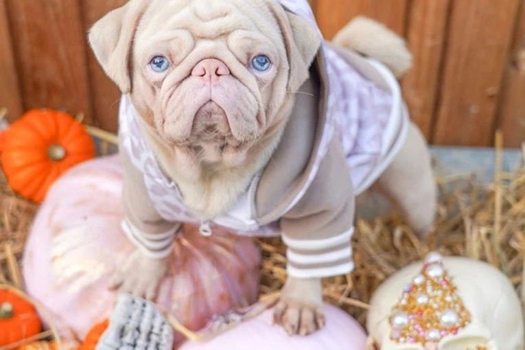U pitanju je retka rasa mopsa ružičastog krzna i neodoljivih plavih očiju. Izuzetno retka genetska mutacija dovela je do ovog neodoljivog izgleda, pa trenutno ovakvih preslatkih psića postoji samo 100 na celom svetu.