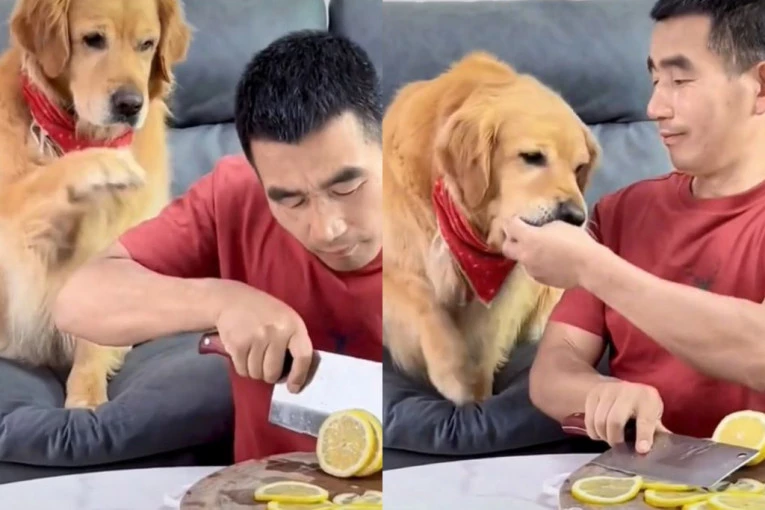 Jedan vlasnik sekao je limun ispred svog psa, a ljubimac je odmah požudno stavio šapu na njegovu ruku, moleći ga da mu udeli koji komad.