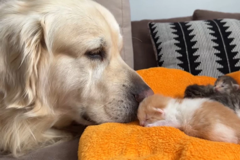Prizor koji će rastopiti i najtvrđa srca: Prvi susret zlatnog retrivera sa mačićima je nešto što obavezno morate da pogledate (VIDEO)