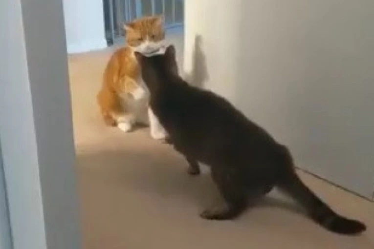Teško je poverovati da mačka može nokautirati drugu mačku, ali i to se dogodilo. Ova situacija srećom je zabeležena kamerom, pa je objavljena na Twitteru i ubrzo je postala hit.