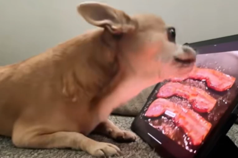 Ako ste ikada gledali svog psa kako pokušava da uhvati senku, da zalaje na usisivač ili da laje na televizor – znate koliko njihove reakcije mogu biti simpatične i iskrene. Ali jedan mali pas, tačnije čivava, otišla je korak dalje i osvojila internet pokušajem da – poliže slaninu. Ali ne bilo kakvu slaninu, već onu koja se „prži“ na ekranu tableta.