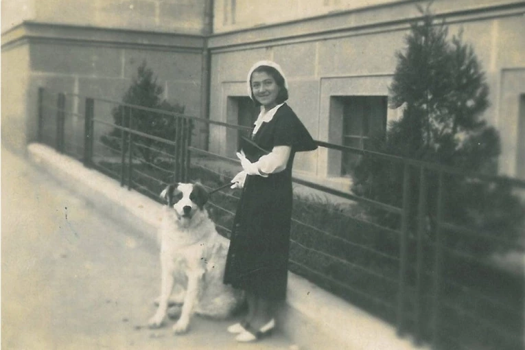 Gordana Bajloni sa svojim psom u bašti Bajlonijeve vile u Kneza Miloša (iz kolekcije Miloša Jurišića), Facebook strana Bio jednom jedan Beograd