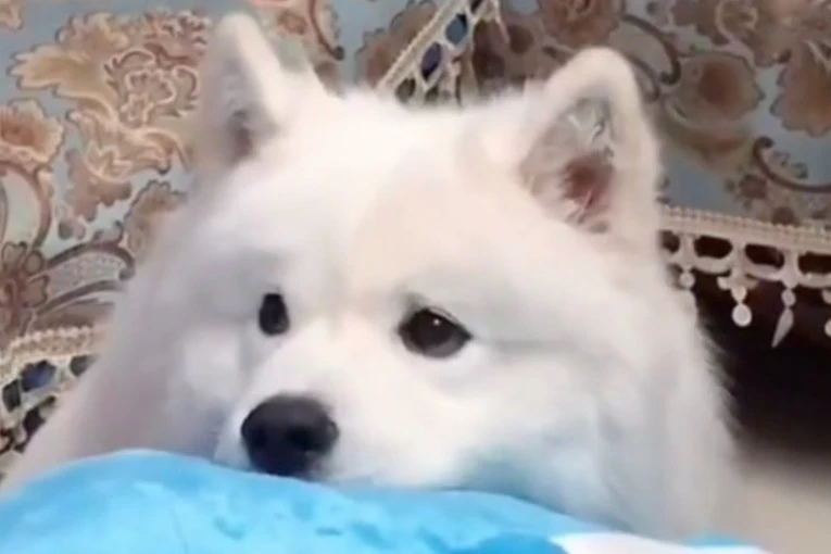 Samojed je prislonio glavu na svog “prijatelja” i tužnog pogleda čekao ishod “operacije”. Samo po njegovom izrazu lica jasno je koliko je tužan što je pocepao svoju omiljenu igračku.