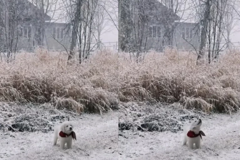 Štene prvi put izašlo na sneg, a njegova reakcija na pahulje će vas rastopiti (VIDEO)
