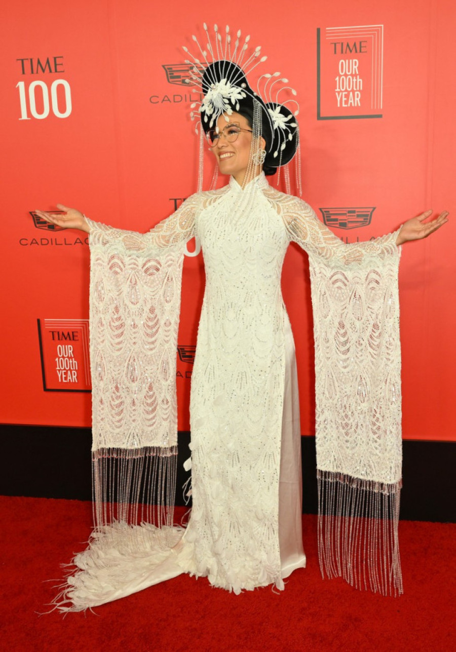 TV zvezda pojavila se na svečanosti čuvenog magazina u providnom odelu - kombinaciji širokih pantalona i košulje-blejzera od istog materijala, s postavom od džepova i vešom koji se vide.