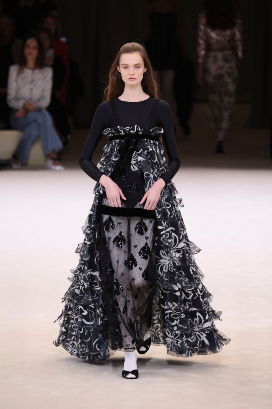 Viržini Vijard, kreativna direktorka kuće Chanel, u slavu veka otkako se Koko Šanel upustila u šivenje kostima za balet, predstavila je kolekciju koja se igrala s kontrastima. S jedne strane, klasični Chanel tvid kaputi i jakne u crno-sivim tonovima pokazivali su poštovanje prema nasleđu kuće, dok su s druge strane cvetni i čipkasti motivi, kao i haljine inspirisane sedamdesetim godinama pršolog veka, dodali moderni i boemski osećaj kolekciji. Ova dualnost je pokazala Chanelovu sposobnost da ostane verni svom identitetu dok istovremeno evoluira i prilagođava se savremenim trendovima.