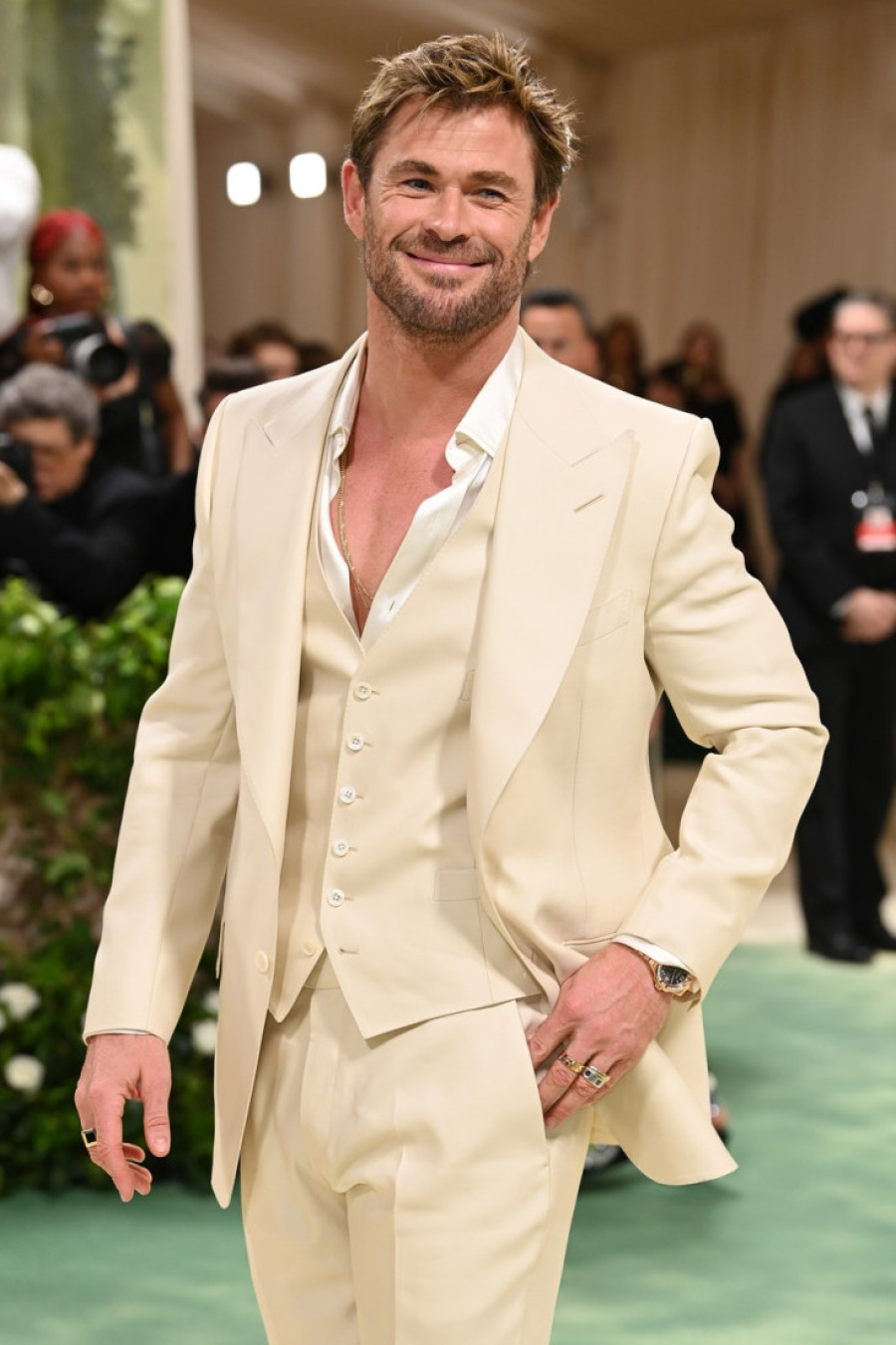 Definitivno su zablistali Bed Bani u skulpturalnom odelu Maison Margiela, dok se Kris Hemsvort opredelio za Tom Forg klasiku u kojoj je izgledao sjajno.