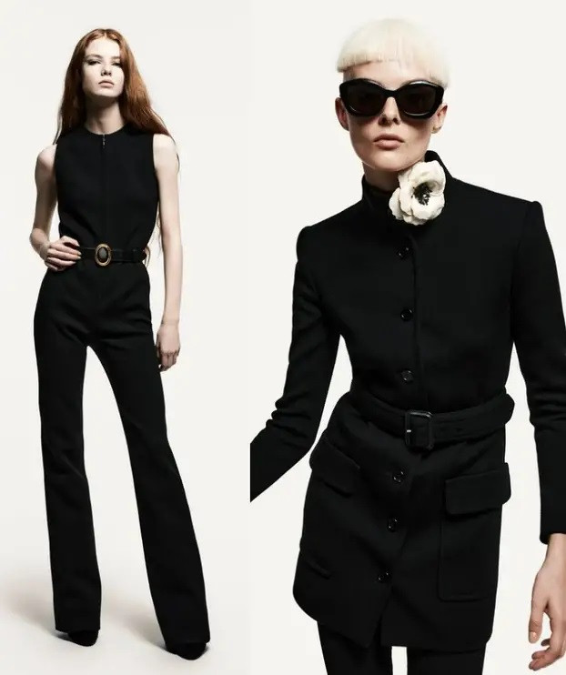 Pored uskih krojeva, u fokusu kolekcije su i kombinezoni s ukrasnim remenom i zlatnim kopčama.
