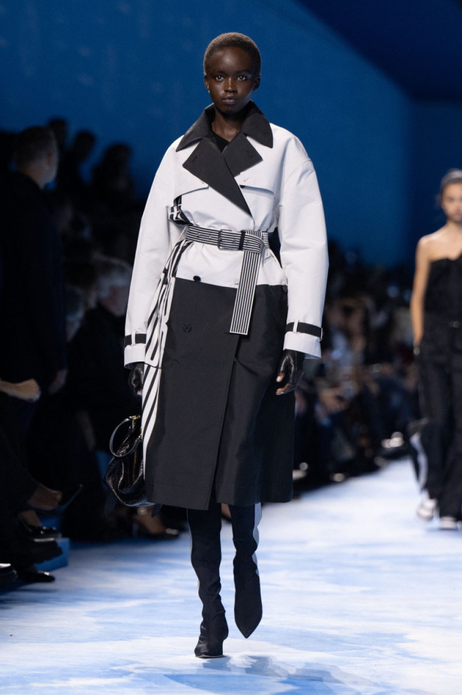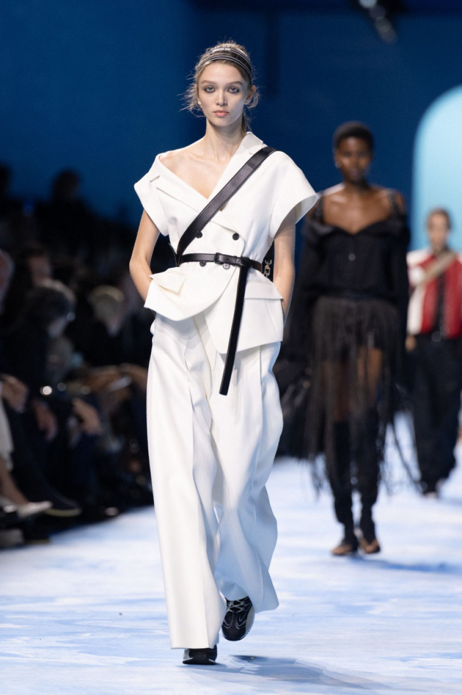 Siluete su zadržale Dior koncept sa strukom istaknutim tankim kožnim kaiševima, ali i trakama na nogavicama i rukavima.