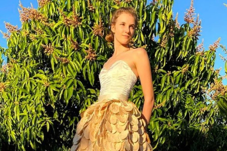 – Više od pet tona manga moramo da bacimo svake godine jer plodovi nisu po standardima supermarketa – počela je svoju priču, a onda i objasnila kako nastaje haljina: – Presečem mango i onda ga odnesem u tatin paročistač. Pokupim oprane ostatke, da bube i insekti ne bi pokušali da jedu voće. Onda ih sušim, sečem napola i ušivam.