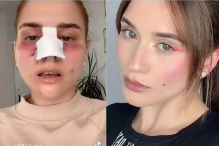 Ukrajinska influencerka je u šest različitih klipova pokazala i kako joj zarasta nos i kako se modrice povlače i na kraju potpuno nov izgled koji je pratioce, malo je reći, ostavio bez reči. Međutim, dobar deo ljudi je uveren kako nije moguće da je ranije imala takav nos i da se poslužila filterom kako bi dramatizovala situaciju.