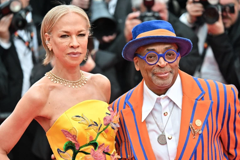 Spajk Li i njegova supruga prošetali su crvenim tepihom u Kanu kao da su izašli iz modne bajke, on u odelu jarkih boja, a ona u lepršavoj haljini koja je blistala poput prolećnog sunca.