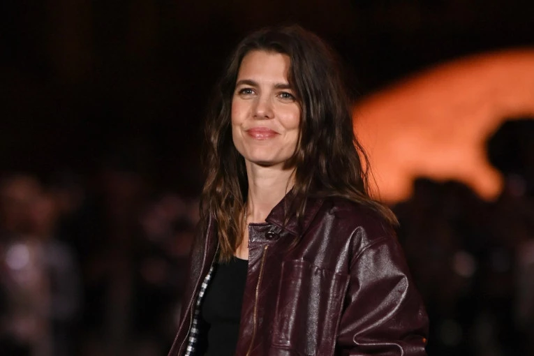 Šarlot, dugogodišnja ambasadorka brenda, pojavila se u bordo kožnoj jakni u bomber stilu, sa postavom u čuvenom pepito desenu. Kombinovala ju je uz jednostavan crni top i sive farmerke ravnog kroja, stvarajući savršen balans između ležernosti i sofisticiranosti.