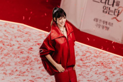 Frizura u opuštenom, "messy" stilu s karakterističnim šiškama i cipele s platformom zaokružile su izgled, naglašavajući čist minimalizam s dozom drame.
