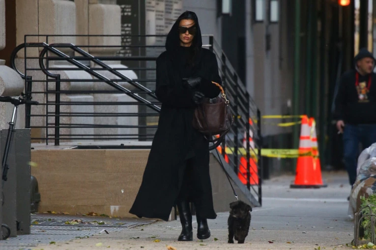Odevena u crno od glave do pete, atraktivna Amerikanka privlačila je poglede u kombinaciji u kojoj je glavnu ulogu imao upečatljiv crni kaput. Uz pripijeni poluprovidni top, elegantne pantalone, visoke potpetice i minijaturnu torbu sa kroko efektom, stvorila je moćan, ali nenametljiv stajling.
