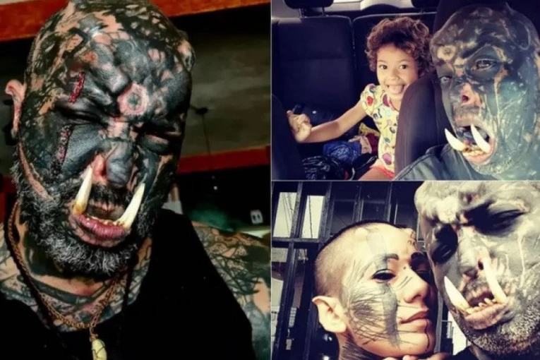 Riko Ledesma (41) i njegova supruga Krišna Insomnia (25) žive u Brazilu sa svojom kćerkom, a na putu je i drugo dete. On već godinama radi na promeni svog izgleda, a osim tetovaža po celom telu, ima i umetke ispod kože. Kako bi upotpunio svoju transformaciju u orka iz “Gospodara prstenova” ugradio je i veštačke kljove, koje je platio oko 450 evra. Osim toga što mu tetovaže prekrivaju 85 odsto tela ima i osam potkožnih umetaka. Raspecio je jezik, a čak su mu i očne jabučice istetovirane.