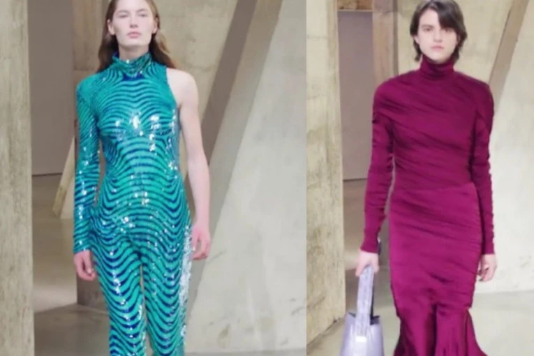 Dizajnerka je pokazala tirkizni kombinezon prošaran stotinama sjajnih ekoloških šljokica koje dočaravaju egzotična mora, dok midi haljine grle telo poput omota slatkiša. Pantalone su od veštačke kože, a čizme, nalik na spektakularne čarape sa integrisanim štiklama, delimično su napravljene od biomaterijala. Ovi stilski trikovi bili su radostan modni trend i povratak smelosti, mladalačkoj energiji i duhovitosti.