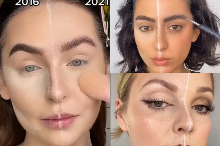 Nedavno je jedna devojka na TikToku pod hashtagom #2016vs2021challenge pokrenula izazov u kojem žene i devojke upoređuju make-up trendove iz 2016. godine s današnjim trendovima šminkanja. Ljubiteljke kozmetike tako online upoređuju svoje make-up rutine, i to tako da s belom crtom po sredini lica podele na dve polovine: pa levu stranu šminkaju kako se to radilo „davne“ 2016. godine, a desnu kako bi našminkale za izlazak te večeri. A razlika je neverovatna.
