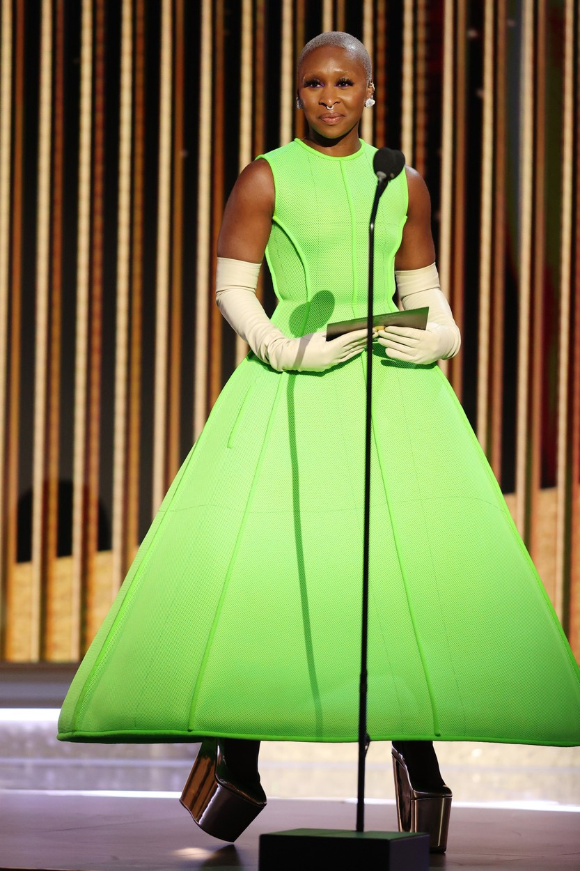 Sintija Erivo imala je neon zelenu kreaciju koju potpisuje Valentino, dok je Nikol Kidman odabrala “Luj Viton.”