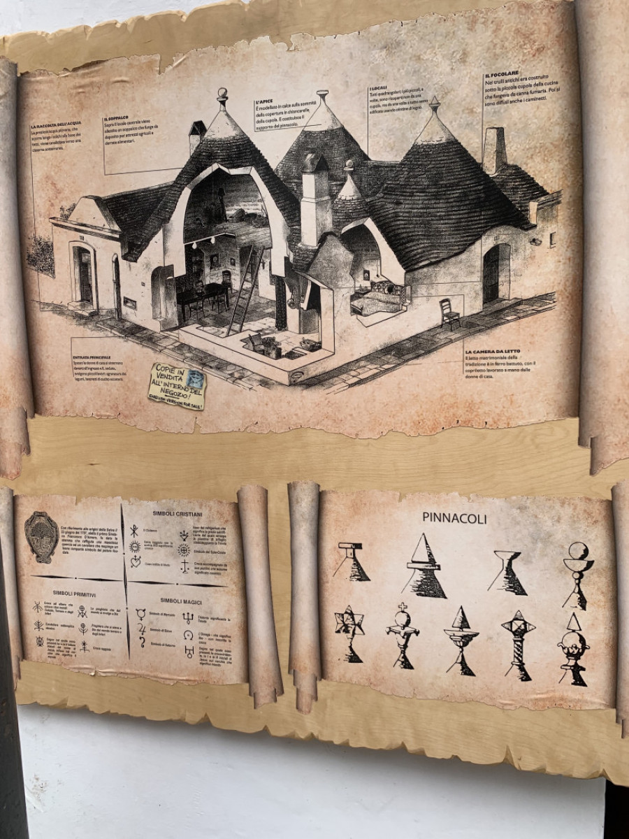 Truli kućice su poznate ne samo po svojoj jedinstvenoj arhitekturi, minijaturnim vratima, već i po simbolima naslikanim na njihovim krovovima. Ovi simboli, najčešće religiozni ili mistični, imaju duboko značenje. Na primer, krstovi simbolizuju zaštitu kuće od zla, dok srce sa krstom predstavlja veru i svetost.
