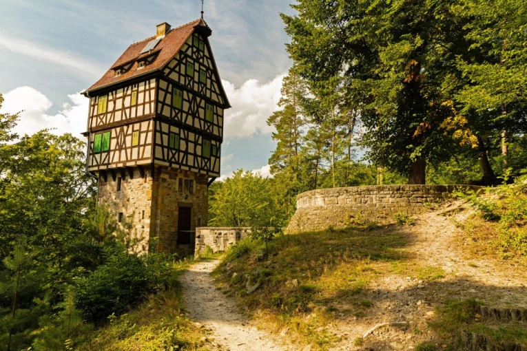 Duboko u zelenilu šume Rieseneck, u srcu Tiringije, skriva se građevina koja na prvi pogled deluje kao da je iskočila iz ilustrovane bajke. Pola kućica, pola toranj, sa drvenim gredama i krovom na više nivoa, ovaj neobični dom krije mnogo zanimljiviju prošlost nego što fasada obećava.