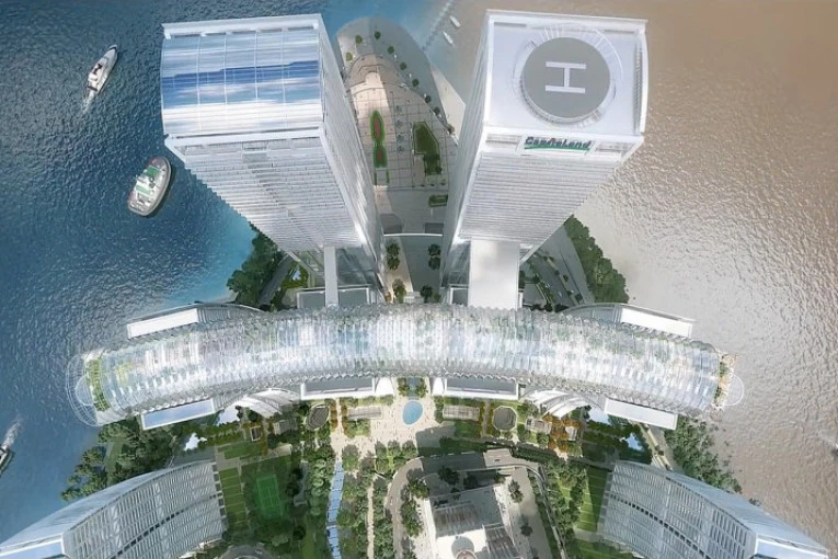 Centralni deo kompleksa čini spektakularna konstrukcija pod nazivom The Crystal – horizontalni neboder dug oko 300 metara, koji povezuje vrhove četiri tornja na visini od gotovo 250 metara iznad zemlje. Ova stakleno-čelična struktura nije običan most, već funkcioniše kao samostalna zgrada postavljena u vazduhu.