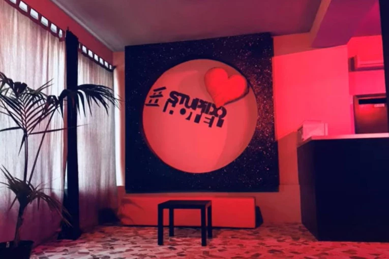 "Stupido hotel", sa tri zvezdice, nalazi se u Riminiju, u ulici Pomezija, nedaleko od mora i parka Fiabilandia i u njemu mogu da borave samo odrasli.