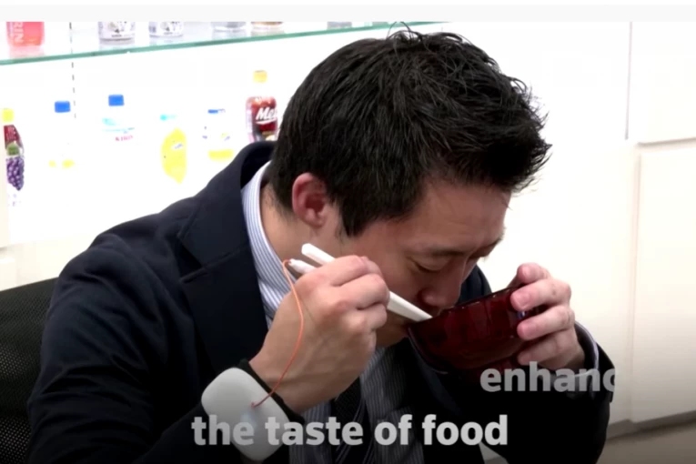 Štapići za jelo, koje su u saradnji razvili profesori s japanskog Univerziteta, utiču na poboljšanje ukusa jela tako što koriste elektrostimulaciju i mini-računar koji se nosi oko zgloba, poput narukvice. Uređaj koristi slabu električnu struju da bi iz hrane preneo natrijumove jone putem štapića za jelo do usta, gde se stvara osećaj slanost. Kao rezultat tog procesa, slani ukus pojačava se za jedan i po put.